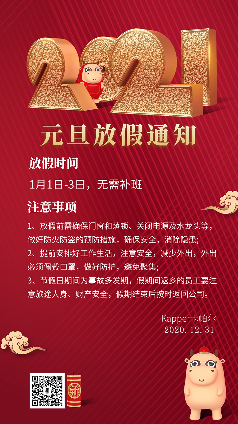 Kapper卡帕爾2016年元旦放假通知