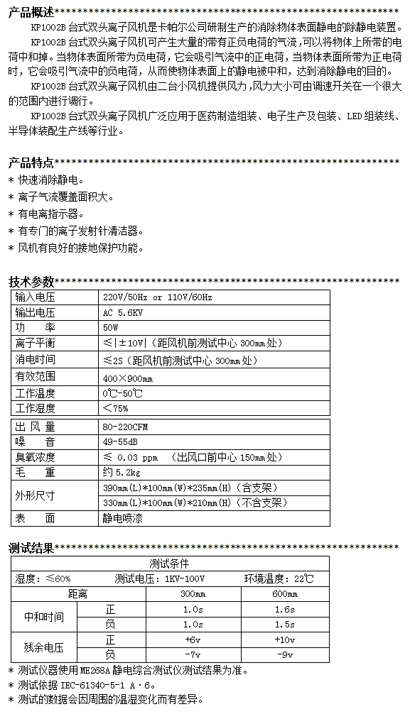 KP1002B第三代臺式雙頭離子風機