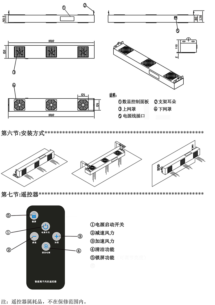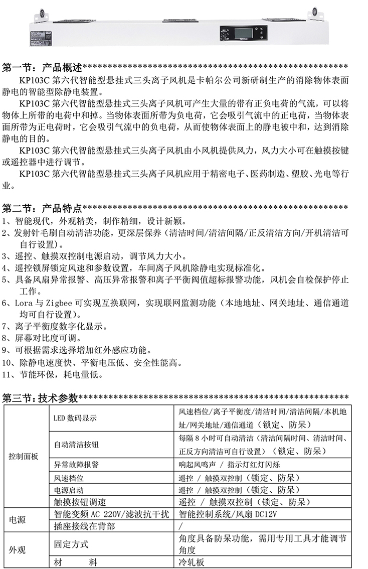 KP103C第六代智能型懸掛式三頭離子風機