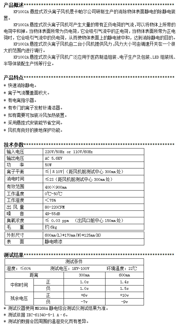 KP1002A第三代懸掛式雙頭離子風(fēng)機(jī)