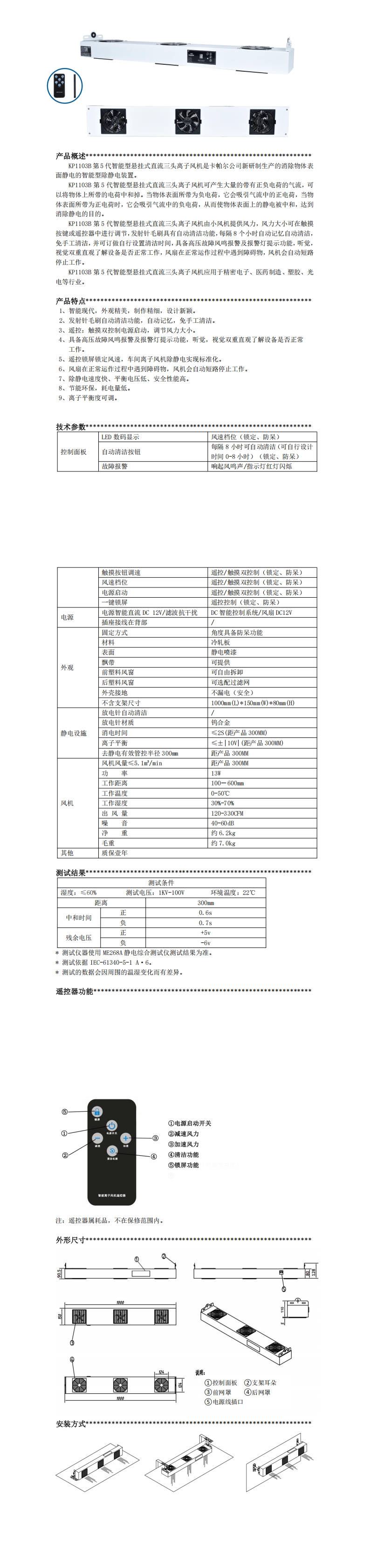 KP1103B 第 5 代智能型懸掛式直流三頭離子風機