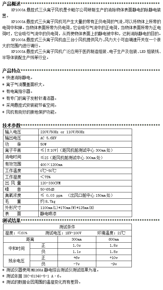 KP1003A第三代懸掛式三頭離子風機