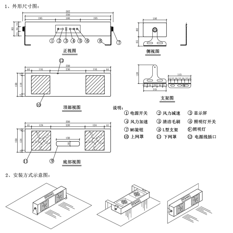 KP102A 第5代智能型懸掛式雙頭離子風(fēng)機(jī)由小風(fēng)機(jī)提供風(fēng)力,風(fēng)力大小可在觸摸按鍵或遙控器中進(jìn)行調(diào)節(jié),發(fā)射針毛刷具有自動清潔功能,每隔8個小時自動記憶自動清潔,免手工清潔,并可訂做自行設(shè)置清潔時間,具備高壓故障風(fēng)鳴報警及報警燈提示功能,聽覺,視覺雙重直觀了解設(shè)備是否正常工作,風(fēng)扇在正常運(yùn)作過程中遇到障礙物,風(fēng)機(jī)會自動短路停止工作。