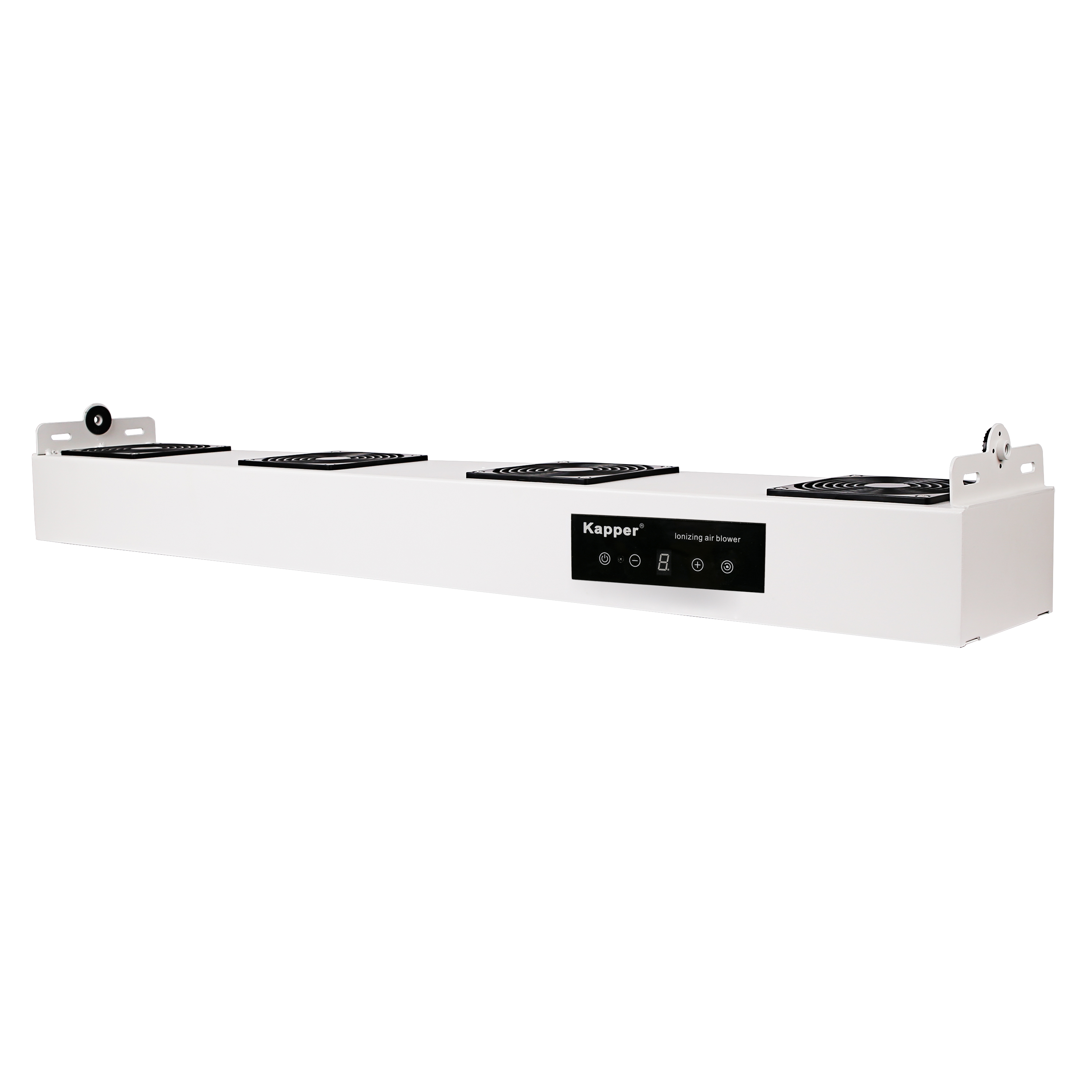 KP104A第5代智能型懸掛式四頭離子風(fēng)機(jī)是卡帕爾公司新研制生產(chǎn)的消除物體表面靜電的智能型除靜電裝置。